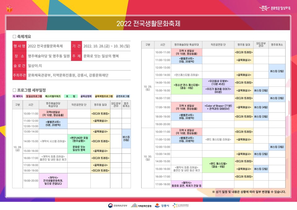 2022년 강원 강릉에서 "전국생활문화축제"가 개최됩니다.