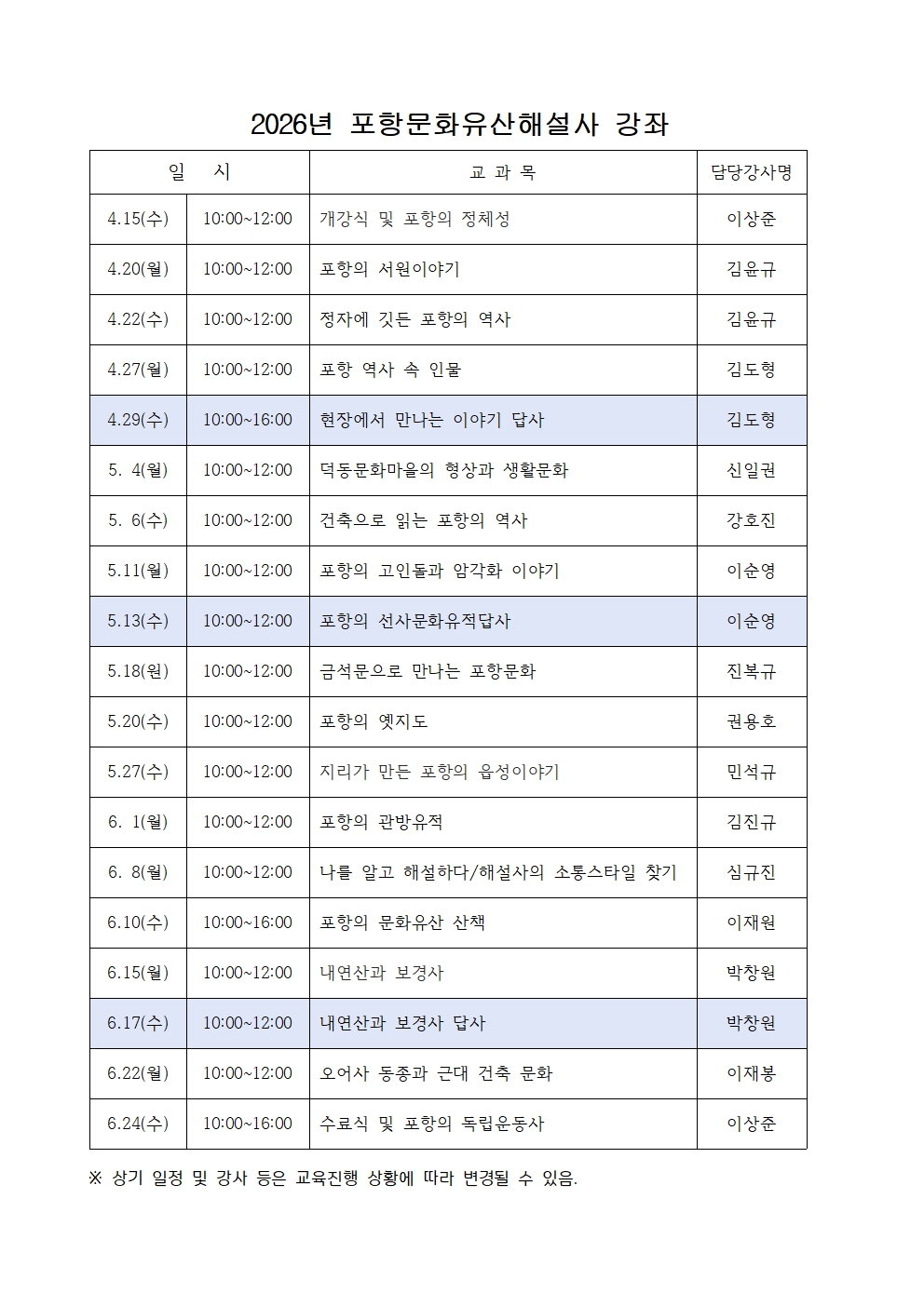 2026년도 포항문화유산해설사 과정 수강생 모집(3.30~선착순 30명)