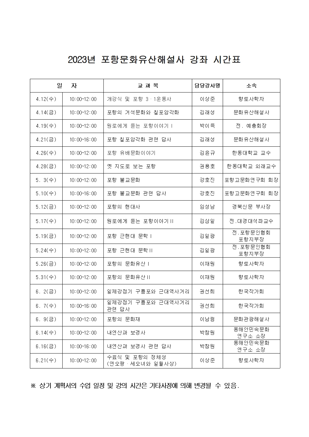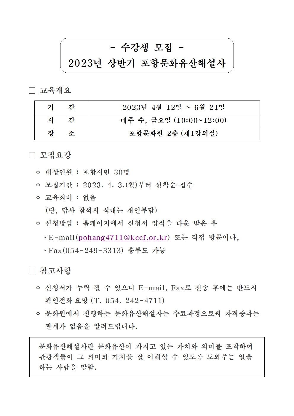 2023년도 포항문화유산해설사 양성과정 모집안내