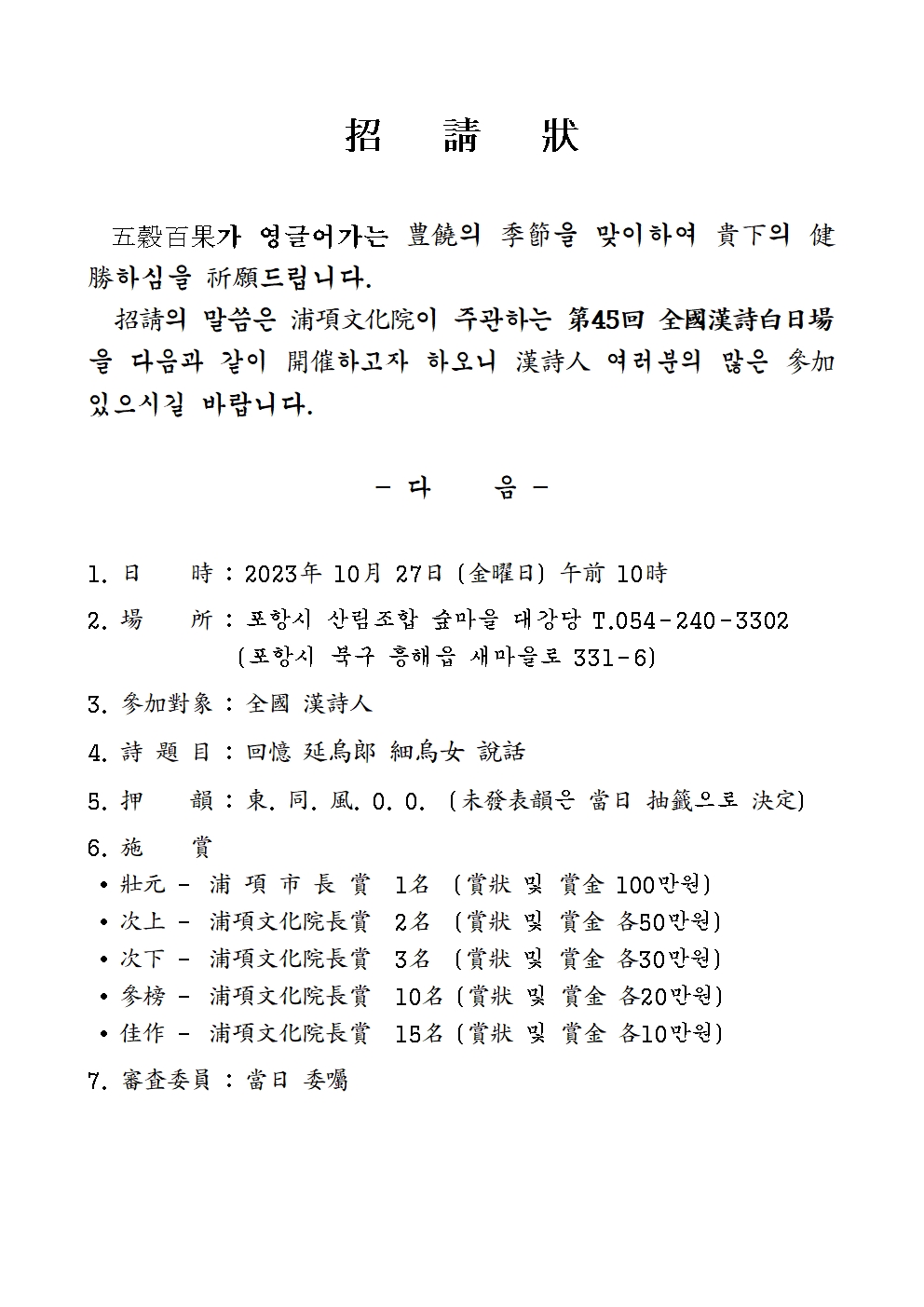 이 문서정보의 저작권은 포항문화원에 있습니다.