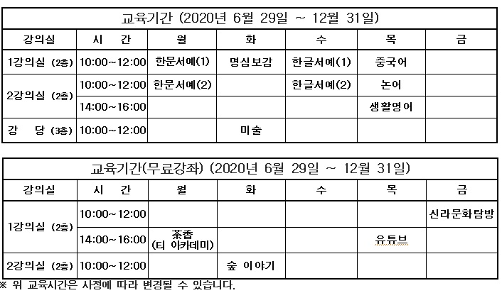 코로나로 인해 연기되었던 2020년도 문화학교를 개강합니다.